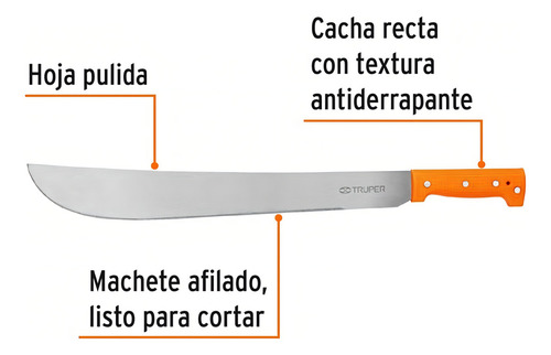 Este machete no incluye estuche, lo que permite un fácil acceso y uso inmediato. Su diseño robusto y duradero garantiza que este machete resistirá el paso del tiempo y las condiciones más duras. La marca Truper es reconocida por su calidad y durabilidad, por lo que puedes confiar en que este machete cumplirá con tus expectativas.