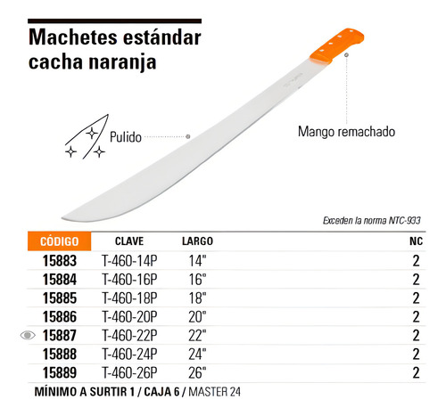 El Machete Estándar 18′ Cacha Naranja Remachada de Truper es una herramienta esencial para cualquier amante de la vida al aire libre. Con su hoja de 18 pulgadas, este machete es perfecto para cortar a través de la maleza, podar ramas y realizar otras tareas de jardinería. Su mango naranja remachado no solo le da un toque de color, sino que también proporciona un agarre firme y seguro, incluso en condiciones húmedas o resbaladizas.