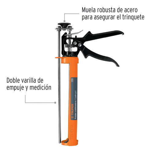 Este producto es ideal para aquellos que buscan calidad y durabilidad. Su cuerpo de acero y maneral de aluminio garantizan resistencia, mientras que su muela robusta de acero asegura el trinquete. Además, cuenta con doble varilla de empuje y medición para mayor comodidad y precisión en su uso.